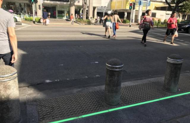 像前面所说的维多利亚街的过道,人流量就超高,特别在上下班的高峰时段,每小时有约4000人过马路,假设以每2分钟亮一次红绿灯计,每次过马路的人多达130人,咱们都挤在路周围,假设没有满足清楚的指示,还真是一大风险。